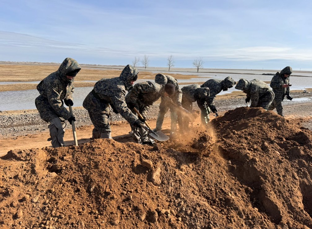 В поселке Шолаксор Актогайского района река вышла из русла со скоростью 50 кубометров в секунду. Как сообщает Optimism.kz, 50 военнослужащих воинской части 5512 Национальной гвардии тут же отправились в Актогайский район, чтобы помочь населенному пункту. Гвардейцы строят дамбы против талых вод и предпринимают все возможные меры, чтобы предотвратить наводнение. Фото: РгК «Шығыс» НГ РК.