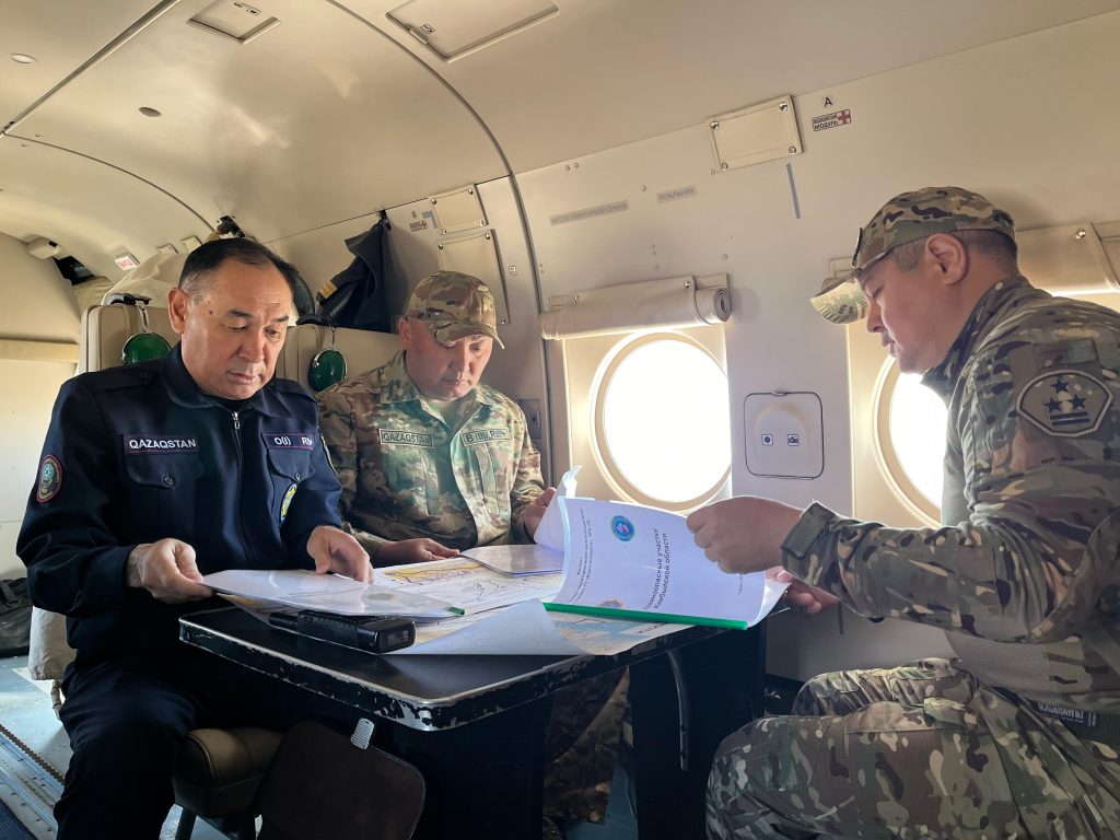 В составе рабочей группы на вертолете МИ-8 «Казавиаспас» МЧС РК были заместитель акима Жамбылской области Канатбек Мадибек, начальник Департамента по чрезвычайным ситуациям Арман Токанов, руководитель филиала «Жамбылское управление территориального пользования» ГУ «Казселезащита» Султан Акбердиев и руководители других заинтересованных органов. Обследования проводились на высоте от 600 до 4000 м.