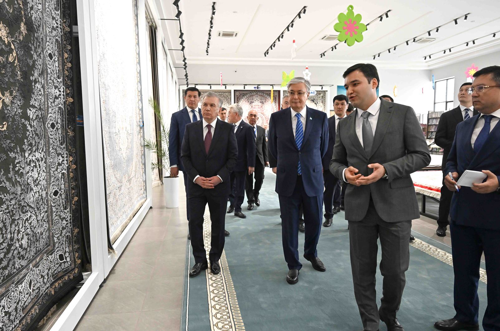Во время рабочего визита в Хиву Касым-Жомарт Токаев и Президент Шавкат Мирзиёев посетили одно из образцовых предприятий легкой промышленности Узбекистана — ковроткацкую фабрику HIVA GILAMLARI. Предприятие было основано в 1977 году и полностью реконструировано и модернизировано в новом виде. На фабрике работают 4 цеха, производящих в общей сложности 4,2 миллиона квадратных метров ковровых изделий в год. Главам государств показали цех по производству акриловой пряжи, ткацкие цеха и шоу-рум. Директор предприятия сообщил, что выпускаемые на фабрике ковры поставляются на внутренний рынок, а также в страны СНГ, Китай и США. После этого президенты посетили выставку промышленных товаров Узбекистана, где были представлены различные продукты легкой и химической промышленности, а также текстиль и украшения. Руководители отметили важность развития экспортоориентированных предприятий в приграничных районах и необходимость совместных мер по улучшению экологической ситуации в регионе, включая высадку деревьев на дне Аральского моря.