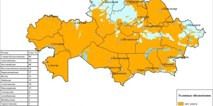 «Ночью ожидается переход дождя в снег: 7, а также 9 и 12 апреля — в Павлодарской области, на востоке страны – область Абай и ВКО, 8 апреля в ЗКО и Актюбинской области, с 8 по 11 апреля  в Костанайской области, на севре республики – в СКО и Акмолинской области, 9-12 апреля — в Карагандинской области, 11 апреля – в области Ұлытау. Сильный дождь ожидается 7 апреля ночью, 11, 12 апреля в Алматинской области, 9 апреля – в Туркестанской области, 9 и 11 – в Жамбылской области, 8 – в центре страны, область Ұлытау и Карагандинская область, 9, 11, 12 – в области Жетісу. На востоке страны – область Абай, ВКО — 9-10 апреля прогнозируется сильный дождь. 11-12 апреля сильные осадки, дождь, переходящий в снег», — сообщила спикер.
