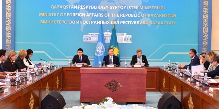 В Министерстве иностранных дел Республики Казахстан прошло ежегодное заседание Координационного комитета Рамочной программы сотрудничества ООН в области устойчивого развития на 2021-2025 годы. В мероприятии принимали участие представители государственных органов РК, агентств и программ ООН в РК, академических кругов и гражданского общества. Первый заместитель министра иностранных дел Кайрат Умаров и Постоянный координатор ООН в Казахстане Микаэла Фриберг-Стори выступили в качестве со-председателей этого мероприятия. В ходе встречи обсуждались вопросы внешнеполитических приоритетов Казахстана, сотрудничества с ООН, реализации Целей устойчивого развития до 2030 года, итоги работы агентств ООН в Казахстане, приоритеты на следующий год, а также совместная работа над экономическими и политическими реформами в стране. Участники мероприятия выразили готовность к продолжению результативного сотрудничества между Казахстаном и ООН. Изображения на событии предоставлены МИД РК.