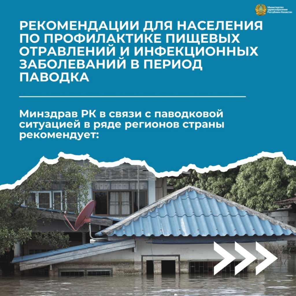Минздрав РК в связи с паводковой ситуацией в ряде регионов страны с целью профилактики пищевых отравлений и инфекционных заболеваний рекомендует: