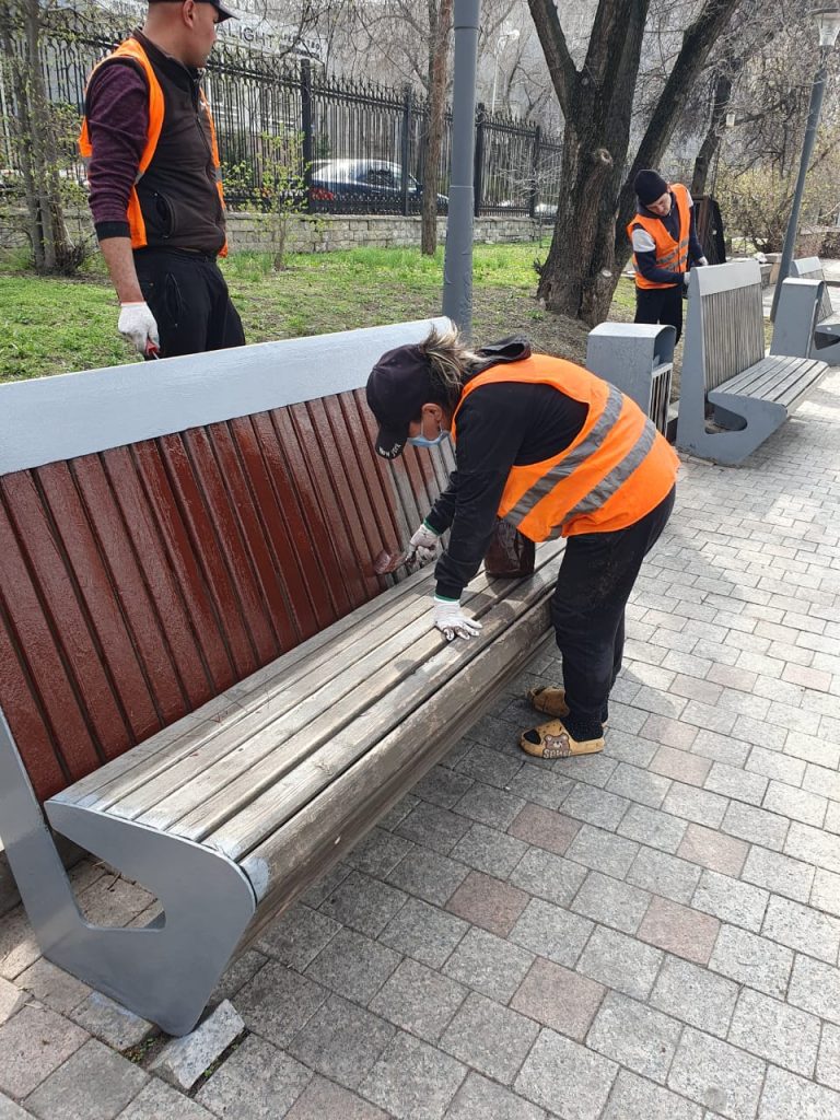 В Жетысуском районе также начаты работы по покраске скамеек и урн, всего до конца апреля будет выкрашено 3514 урн и 2200 скамеек силами 30 человек. Объекты будут выкрашены по проспектам Суюнбая, Рыскулова, Райымбека, а также вдоль шоссе Северное кольцо.