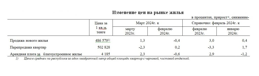 *Бюро национальной статистики АСПиР РК ежемесячно мониторит цены на рынке жилья. Индексы цен формируются на основе данных выборочного наблюдения по областным центрам и городам Астана, Алматы, Шымкент. Информацию по продажам нового жилья собирается у строительных организаций, совершающих операции по продажам, при этом учитываются цены нового жилья с черновой и чистовой отделками. По перепродаже квартир и аренде благоустроенного жилья учитываются данные из объявлений, размещаемых на интернет-ресурсах, в средствах массовой информации. При подсчете цен рассматриваются предложения по одной,-двух,-трех комнатным квартирам.