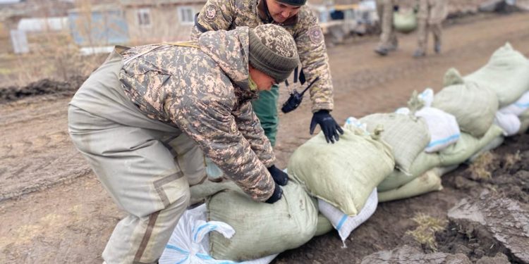Личный состав 2-го сводно-спасательного батальона воинской части 28237, в составе 80 военнослужащих, разделенных на две группы днем и ночью, продолжает проведение аварийно-спасательных, неотложных и профилактических работ по устранению последствий весенних паводков в Костанайской области, как сообщает Optimism.kz. По прибытии на место чрезвычайной ситуации личный состав совместно с ДЧС Костанайской области незамедлительно приступил к противопаводковым мероприятиям в зонах затопления. Силами и средствами воинской части проводятся работы по наполнению мешкотар внутренними материалами, их укладке в зонах затопления, укреплению берегов реки Тобол, арычных систем, а также вместе с ДЧС Костанайской области производится откачка отталкивающих вод с улиц и дворов жилых домов с использованием специальных средств для предотвращения паводков. Проведенные мероприятия позволили снизить возможные риски затопления населенных пунктов и инфраструктуры города Костанай. Спасатели воинских частей гражданской обороны всегда готовы выполнить любую задачу в любую погоду, поскольку их цель — служение народу! (Фото: МЧС РК)