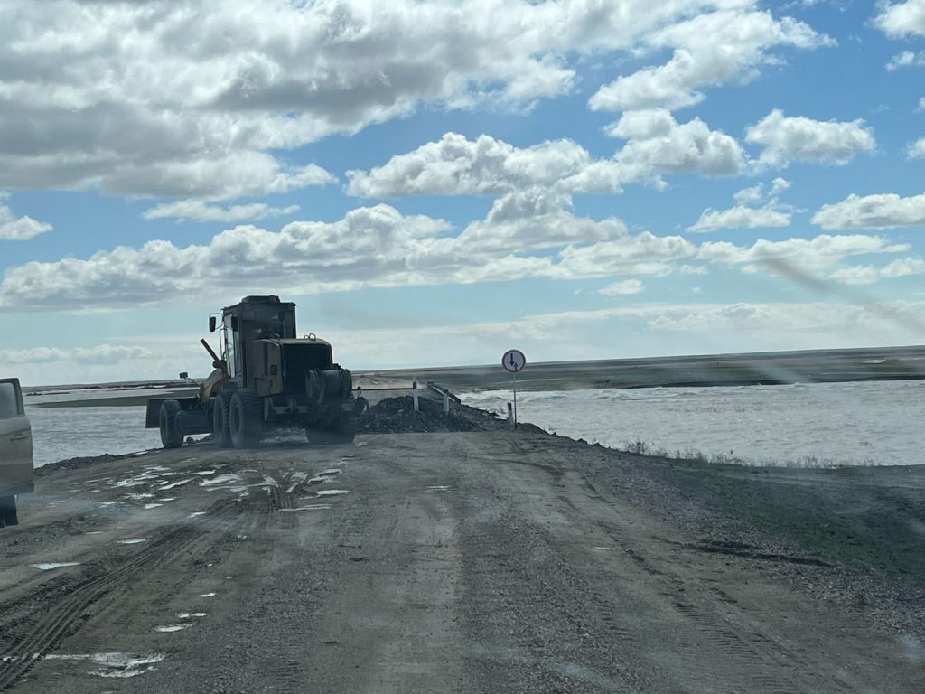 В результате обильных дождей река Калгутты вышла из русла и вызвала затопление степи в Восточном Казахстане. Для сохранения дорожного сообщения на 23 км трассы было принято решение вскрыть дорожное полотно. Сейчас подвозятся необходимые материалы для восстановительных работ, которые начнутся после спада уровня воды. Населенные пункты, соединенные данным участком дороги, насчитывают 705 человек. Работы по восстановлению начнутся немедленно после того, как ситуация с водой стабилизируется. Фото предоставлено акиматом Курчумского района.