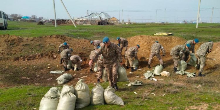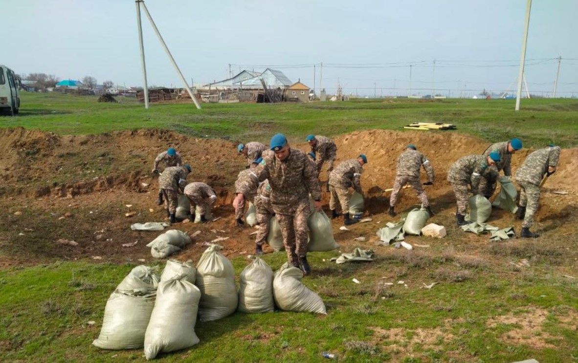 Десантники устанавливают заслоны на берегах рек в пригородных районах Уральска. Более 300 военнослужащих Десантно-штурмовых войск Жетысуского и Алматинского гарнизонов задействованы в берегоукрепительных работах в Западно-Казахстанской области.