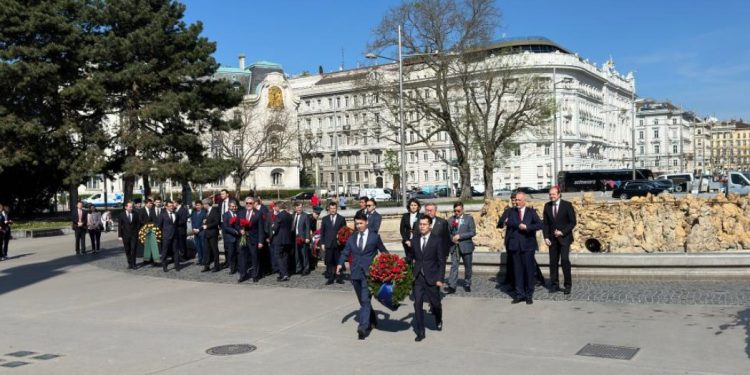 В Вене отметили 79-ю годовщину освобождения города, почтив память советских воинов, которые жертвовали своими жизнями в борьбе с фашизмом. Церемония возложения венков к мемориалу собрала дипломатические представительства нескольких стран, в числе которых были и представители Казахстана. Об этом сообщает Optimism.kz.