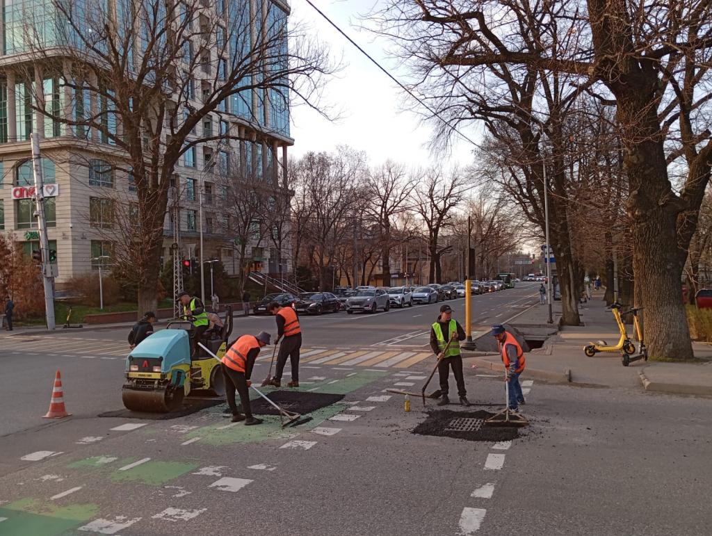Кроме того, произведен текущий ремонт дорог на площади более 17 000 м2 асфальтобетонного покрытия, в том числе на магистральных улицах Райымбека, Сатпаева, Бухар Жырау, Тимирязева, Рыскулова, Момышулы, Алтынсарина, Майлина, Талгарском тракте, Гагарина, Жарокова, Мустафина и других. При этом все вышеперечисленные работы будут продолжаться на протяжении всей кампании.