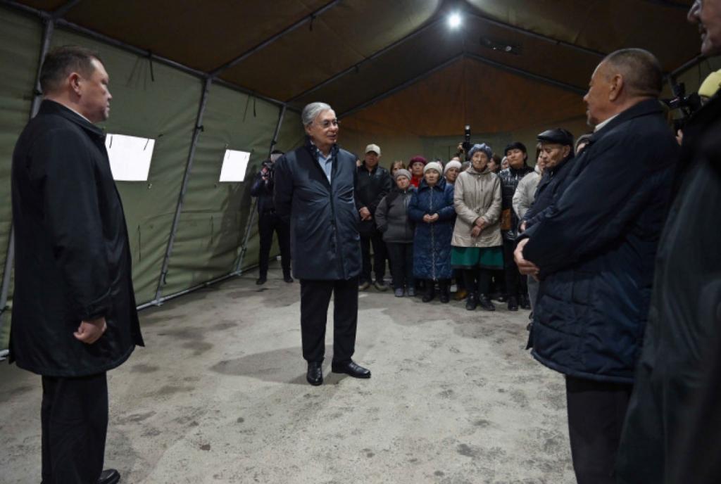 Президент в оперативном штабе, развернутом в городе Тобол, встретился с жителями сел Костанайского района, пострадавшими от наводнения.