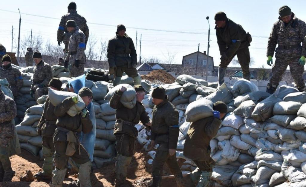В Петропавловске военнослужащие принимают участие в защите водоочистных сооружений, сообщает Optimism.kz. В Северо-Казахстанской области спасателям и местному населению помогают военнослужащие войсковых частей из Астаны и Караганды. Военнослужащие из войсковой части 31775 РгК «Астана» участвуют в работе на территории водоснабжающей компании «Кызылжар су». Они строят защитное сооружение из мешков с песком высотой 180 см и шириной в три метра. Некоторые группы военнослужащих также участвуют в противопаводковых мероприятиях в селе Бесколь и доставляют питьевую воду жителям областного центра.