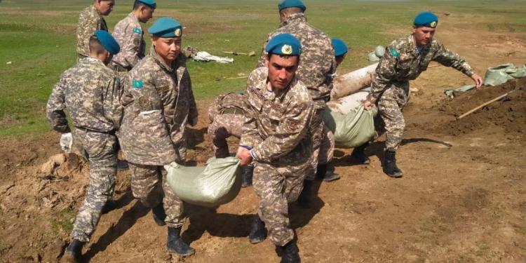 Более 300 десантников из Алматинского и Жетысуского гарнизонов приняли участие в противопаводковых мероприятиях в регионе, как сообщает Optimism.kz. Военнослужащие из воинских частей 61993 и 18404 были разделены на группы и направлены в районы, где имеется риск затопления населенных пунктов. В течение последних суток в селе Рубежинское Байтерекского района была построена дамба протяженностью 500 метров и высотой три с половиной метра, для чего было использовано 1850 мешков с песком и три рулона защитной пленки. В соседнем селе Подстепное было построено укрепительное сооружение длиной семьсот метров, высотой два с половиной метра, на это было использовано 110 метров целофановой пленки и более 3000 мешков с песком. В Акжайыкском районе военнослужащие 38-й десантно-штурмовой бригады продолжают работы в селах Жанабулак и Бударино под руководством майора Куаныша Калиева. Работы по укреплению берегов Урала также проводятся в селах Магистральное, Байконыс и Дарьинское. Фото: Пресс-служба Минобороны РК.