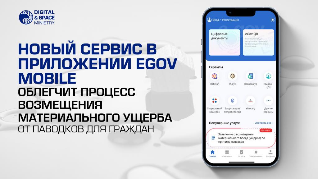 Астана, 17 апреля 2024 — Министерство цифрового развития, инноваций и аэрокосмической промышленности Республики Казахстан запустил сервис в мобильном приложении eGov mobile, предназначенного для приема заявлений о возмещении материального ущерба, причиненного паводками.