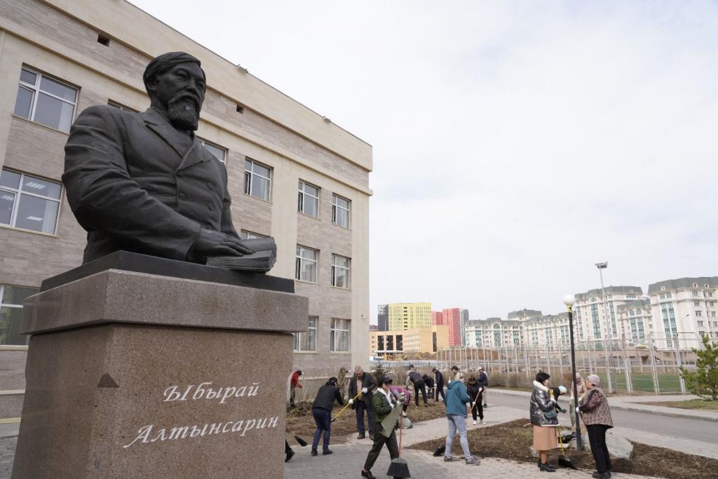 «По поручению Главы государства по всей стране началась масштабная экологическая акция «Таза Қазақстан. Астана – образец чистоты и порядка». Так, с целью очистки общественных пространств, исторических объектов, улиц и дворов, мы собрались приводить в порядок бюст великого общественного деятеля Ыбырая Алтынсарина.