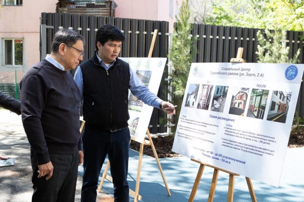 В ходе рабочего обхода Турксибского района глава города Ерболат Досаев посетил Социальный центр и познакомился с его работой. Встреча с жителями проходила в рамках этого мероприятия. Аким Турксибского района Бахытжан Акжаров сообщил, что данный центр является первым в районе, где жители могут получить различные социальные услуги. В здании центра также расположились другие организации, такие как Совет ветеранов, Общество инвалидов и социальный клуб «Шыңға Өрлеу». По инициативе мэра Алматы Ерболата Досаева был разработан типовой проект подобных центров для масштабирования опыта на все районы города.