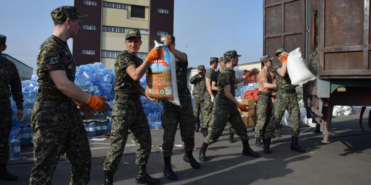 Более 4500 тонн гуманитарной помощи были доставлены железнодорожным, автомобильным и воздушным транспортом в пострадавшие от наводнений регионы. Сегодня только по распоряжению Президента Узбекистана Шавката Мирзиеева было направлено 15 грузовиков с гуманитарной помощью, включая продукты питания, одежду, матрасы, палатки и другие предметы первой необходимости. В разгрузке и погрузке груза помогали волонтеры и военнослужащие, включая курсантов Академии Национальной гвардии. Вместе с выполнением задач по водоотводу и созданию песчаных мешков, гвардейцы помогали в разгрузке грузов, направленных в г. Петропавловск. Угроза наводнения также остается высокой в других регионах Казахстана, где Национальная гвардия активно занимается эвакуацией и сооружением дамб.На данный момент свыше 3 тысяч военнослужащих задействованы в противопаводковых мероприятиях, оказывая помощь населению и поддерживая правопорядок в зонах стихийного бедствия.$arity