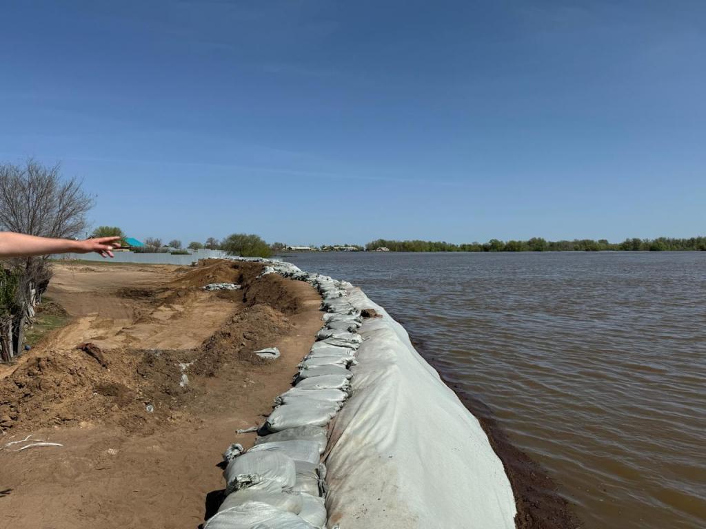 - В селе Дарьинское – вдоль поселка по ул. Нурпеисовой возведена дамба протяженностью 1,4 км, высотой от 6 метров, ширина основания 10 метров. На наружную часть вала полностью уложены мешки с песком для укрепления. По ул. Озерная ведутся работы по укреплению дамбы протяженностью 1 км. Также вдоль набережной возводится дамба протяженностью 0,7 км. Общая протяженность трех дамб составляет — 3,1 км.
