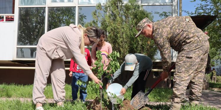 Военные семьи в Шымкенте активно участвуют в субботнике