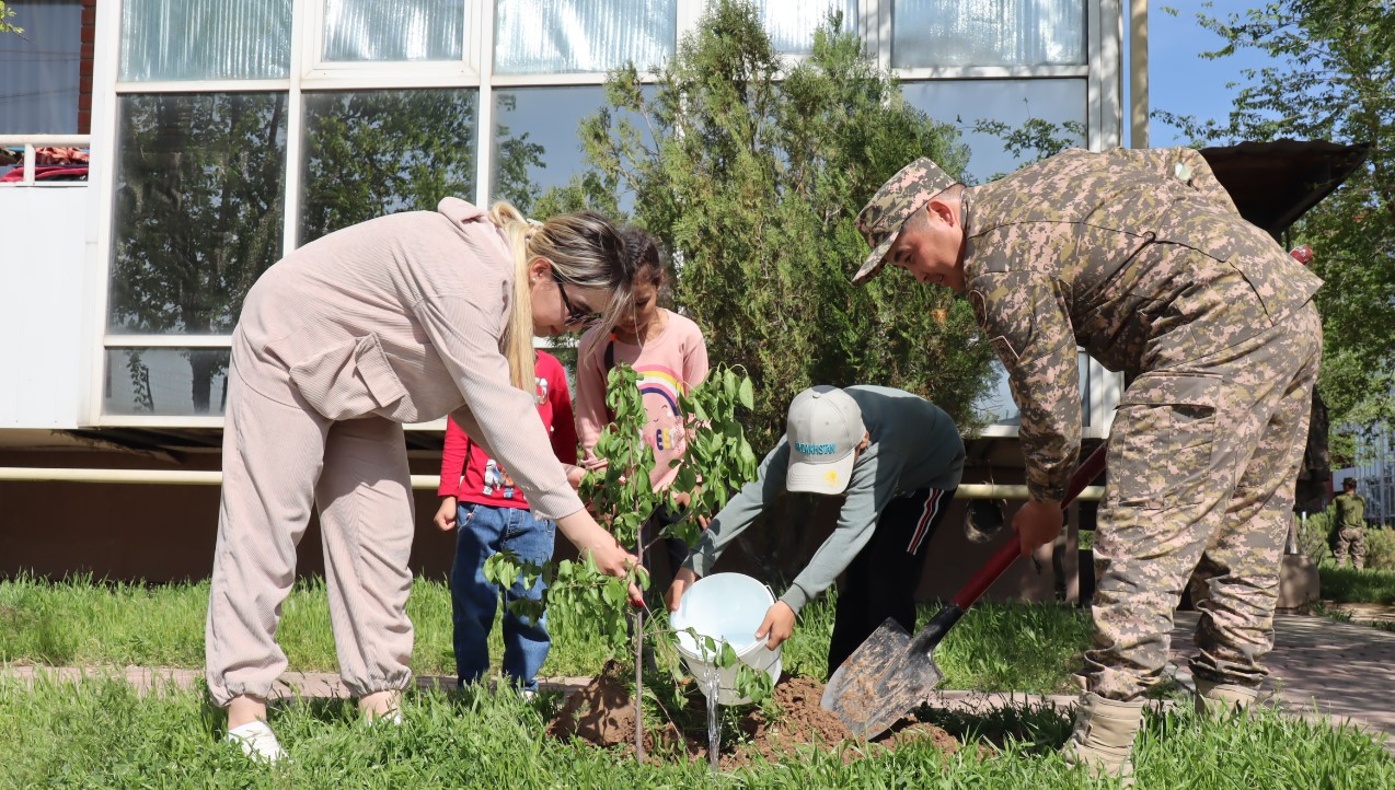 Военные семьи в Шымкенте активно участвуют в субботнике