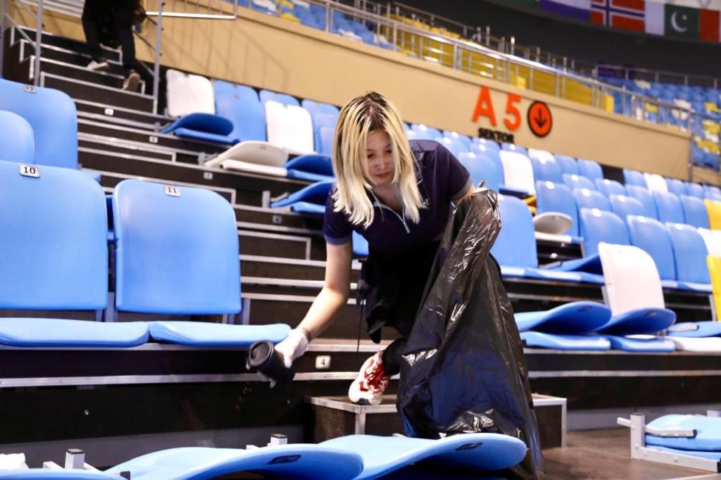 Группа столичных волонтеров и неравнодушных зрителей убрала мусор с трибун Дворца единоборств им. Ж. Ушкемпирова. Граждан восхитила не только активность столичных зрителей, но и их осознанность. Ведь к уборке присоединились как активисты и волонтеры КГУ «Астана Жастары», так и все неравнодушные жители Астаны.