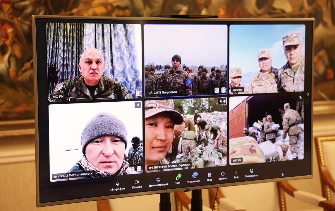 В телемосте участвовали военнослужащие различных региональных командований Казахстана, причастные к работам по защите населенных пунктов и инфраструктуры от наводнений. Участвующим солдатам и офицерам было важно получить обращение министра. Министр отметил значительный вклад военных в ликвидацию чрезвычайных ситуаций, также выразив благодарность родителям солдат за воспитание.