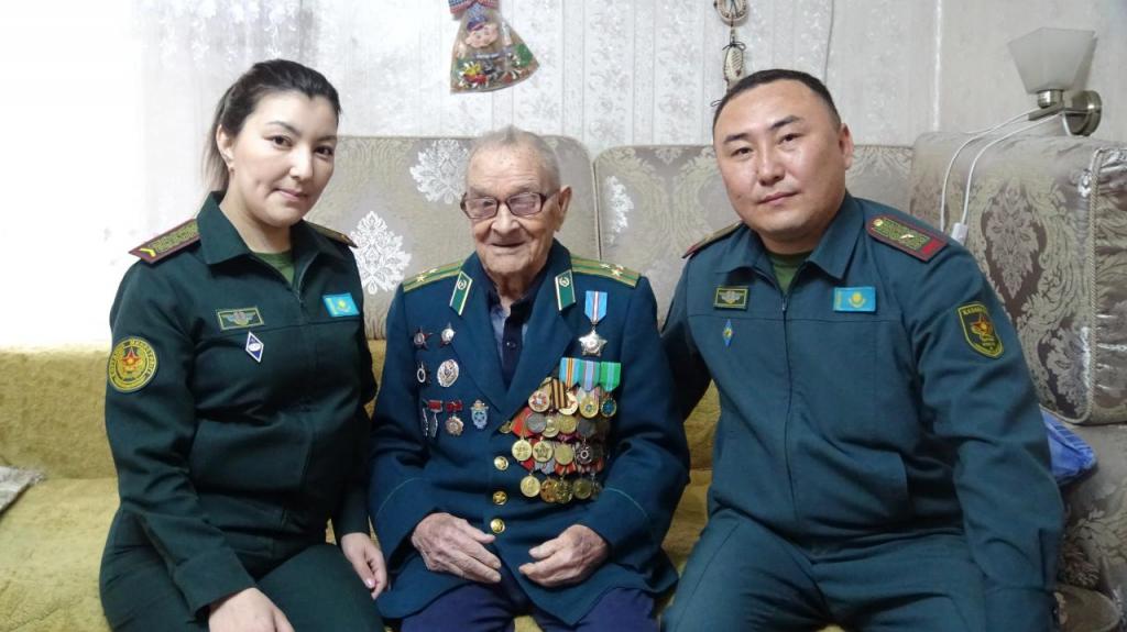 Военнослужащие управления по делам обороны Турксибского района, Пограничной службы КНБ, а также представители военно-патриотических клубов города Алматы посетили Николая Таратунина, ветерана Великой Отечественной войны.