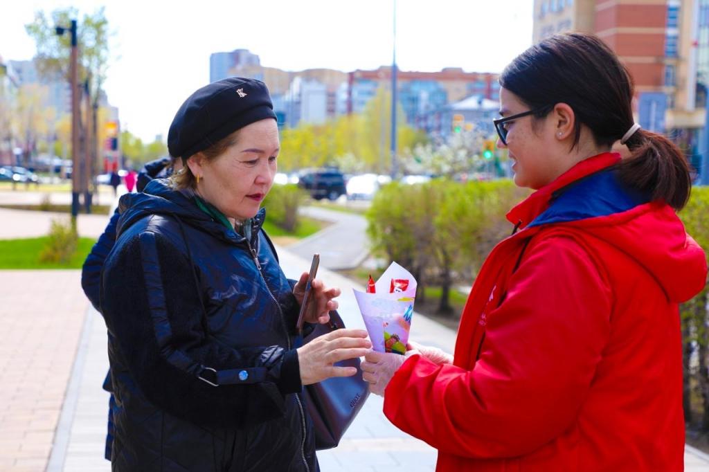 «В этот солнечный день волонтеры поздравили астанчан и гостей города с праздником и подарили им национальное казахское угощение. Так, в местах массового скопления людей и на остановках столичным жителям раздали бауырсаки и сладости», — сказал сотрудник Управления по вопросам молодежной политики г. Астаны Дамир Айтымов.