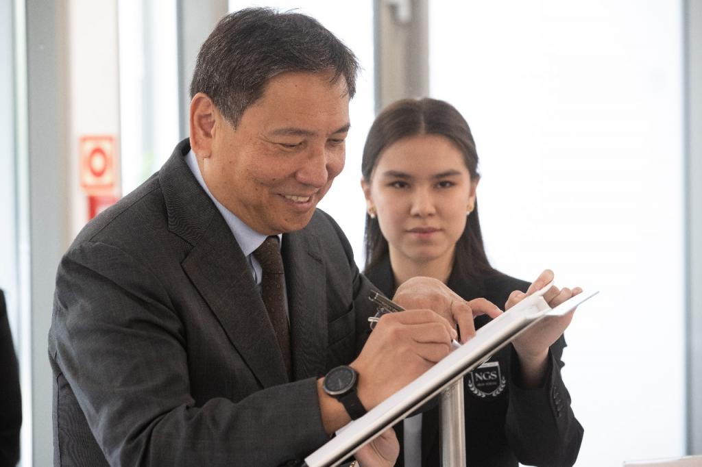 Аким Алматы Ерболат Досаев посетил школу New Generation School (NGS), построенную в 2018 году за счет частных инвестиций в сумме 8,9 млрд тенге.