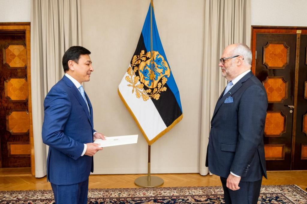 Посол Республики Казахстан в Эстонской Республике Алтай Кульгинов вручил верительные грамоты Президенту Эстонии Алару Карису. На встрече был отмечен дружественный характер отношений между двумя странами и важность углубления сотрудничества в различных областях, особенно в цифровизации, транспорте и логистике. Президент Эстонии выразил поздравления Послу Казахстана и пожелал успехов в дальнейшем развитии казахско-эстонских отношений. (Фото: МИД РК).