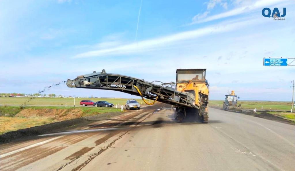 На дороге республиканского значения Алматы-Екатеринбург проводятся работы по среднему ремонту, сообщает Optimism.kz. В настоящее время проводится настил дорожного полотна толщиной 5 см из горячего асфальта. Фото: t.me/qazavtojol.