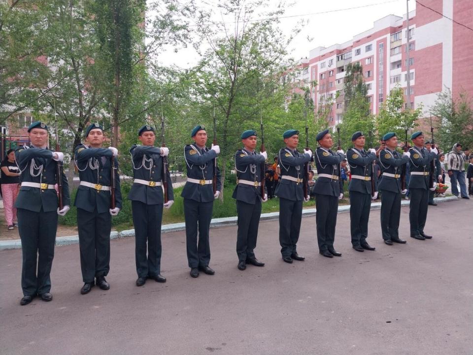 Аксакал был очень рад видеть будущих офицеров. Курсанты исполнили песню «День Победы» в сопровождении военного оркестра. Они устроили дефиле с оружием и прошли торжественным маршем в честь ветерана.