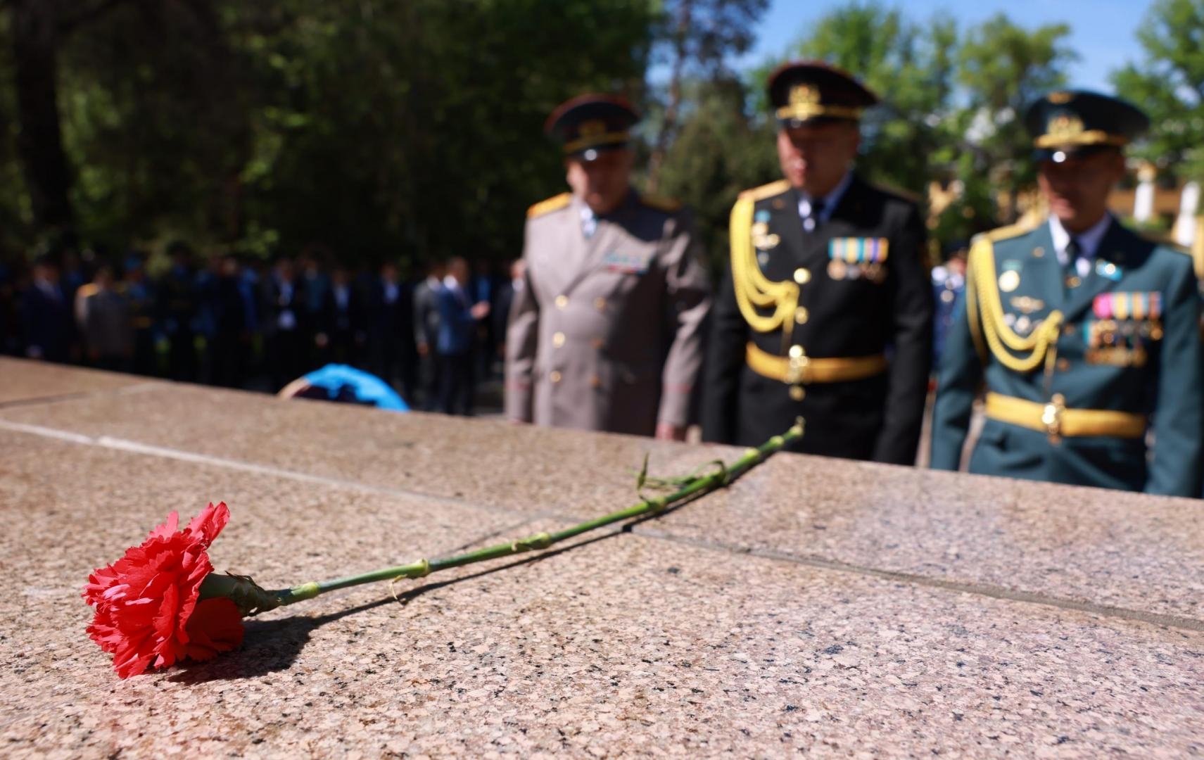 Затем состоялась церемония возложения цветов к Обелиску Славы в центральном городском парке, в которых принял участие аким области Бейбит Исабаев, руководство города, ветераны и действующие военнослужащие. После этого глава региона побеседовал с ветеранами, поздравив с праздником и пожелав крепкого здоровья и благополучия.