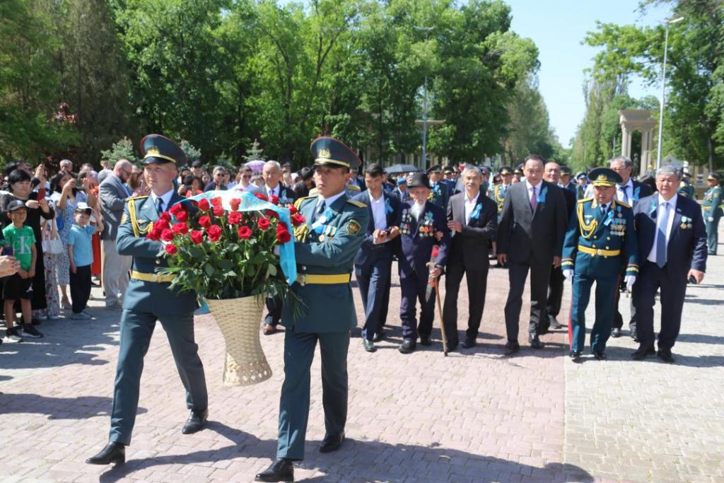 В Жамбылской области отметили День Победы в Великой Отечественной войне церемониями и мероприятиями. В областном центре прошла церемония возложения венков к Вечному огню у мемориала «Подвиг» с участием ветеранов и военных. Об этом сообщает Optimism.kz.