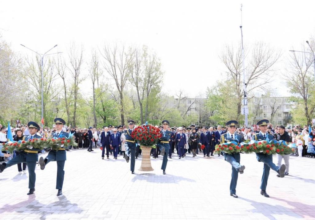 Мероприятие, посвященное Дню Победы, прошло в Карагандинской области с участием акима, военнослужащих, представителей власти, общественников и жителей региона. Все присутствующие вместе почтили память погибших в Великой Отечественной войне минутой молчания и возложили цветы к Вечному огню. Затем аким области посетил ветеранов на дому, среди которых были участники снайперской подготовки и боевых действий под Сталинградом. Сегодня в регионе проживают 11 участников и инвалидов Великой Отечественной войны, которые к празднику получили материальную помощь. Также помощь оказана труженикам тыла, узникам концлагерей, жителям блокадного Ленинграда и другим категориям, приравненным к ветеранам. Все участники мероприятия почтили память погибших войной и отмеченные подвиги ветеранов по достоинству.