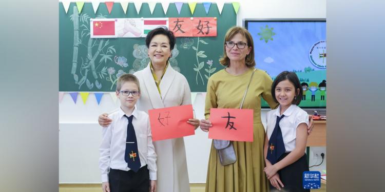 Супруга президента Китая Си Цзиньпина, Пэн Лиюань, вместе с Анико Леваи, супругой премьер-министра Венгрии Виктора Орбана, посетила венгерско-китайскую двуязычную школу в Будапеште в четверг. По прибытии они были тепло встречены руководством школы, а ученики приветствовали их с флагами Китая и Венгрии. Пэн Лиюань и А. Леваи с интересом посмотрели занятия по китайскому языку и культуре, а также пообщались с учениками. Первая леди Китая отметила, что эта школа символизирует дружбу между Китаем и Венгрией, и что ученики очень хорошо говорят по-китайски. Они также посмотрели видеоролики о 20-летней истории школы, шоу талантов и фотографии с учениками. Перед отъездом Пэн Лиюань подарила школе книги о китайской культуре. Венгерско-китайская двуязычная школа была основана в 2004 году и предлагает 12-летнюю систему обучения на китайском и венгерском языках.