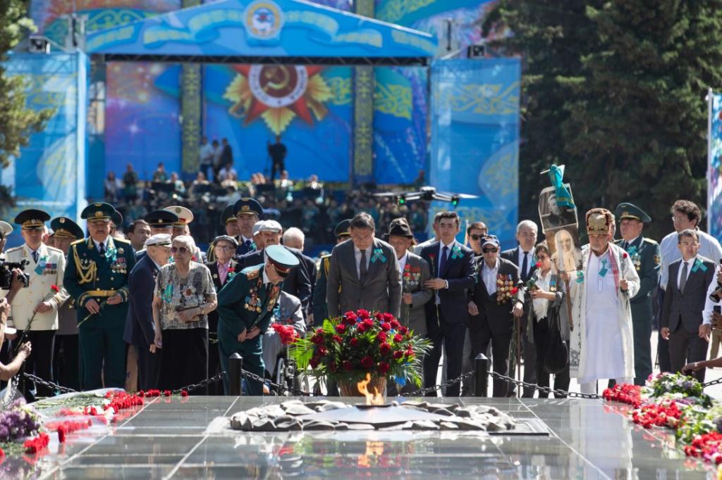 В Алматы также прошли церемонии возложения цветов к мемориальным доскам, монументам и памятникам героев войны: к монументу Б. Момышулы, мемориальной доске Т. Бигельдинова, С. Нурмагамбетова, бюсту С. Луганского, памятнику А. Шарипова мемориалам «Вечная память сынам Отчизны», «Могила неизвестного солдата» и «Вечная слава героям, павшим в боях за Родину».