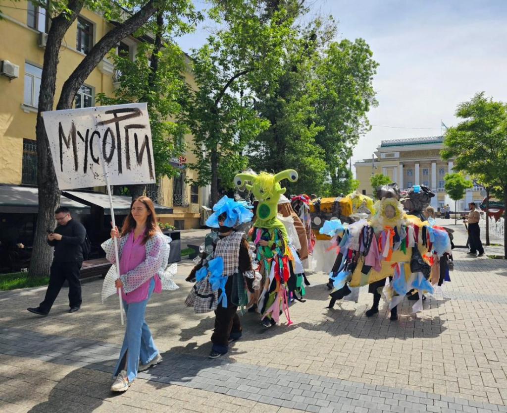 Костюмированные персонажи в образе мусора («Воздушная королева» как символ загрязнения воздуха «Кокыс бике Мунайбайкызы» — мусор, производимый из продуктов нефтепереработки, и др.) были созданы группой алматинских художников, которые таким образом попытались привлечь внимание к последствиям нерационального потребления и безответственного отношения к природным ресурсам. По концепции флешмоба «Мусорги» прошлись по одной из центральных улиц – Панфилова, завершилось шествие на Арбате. Сотни горожан пришли понаблюдать за необычным арт-проектом, высказывая мнение о важности своевременного решения экологических проблем. Спонсором проекта выступила компания «Астана Моторс».