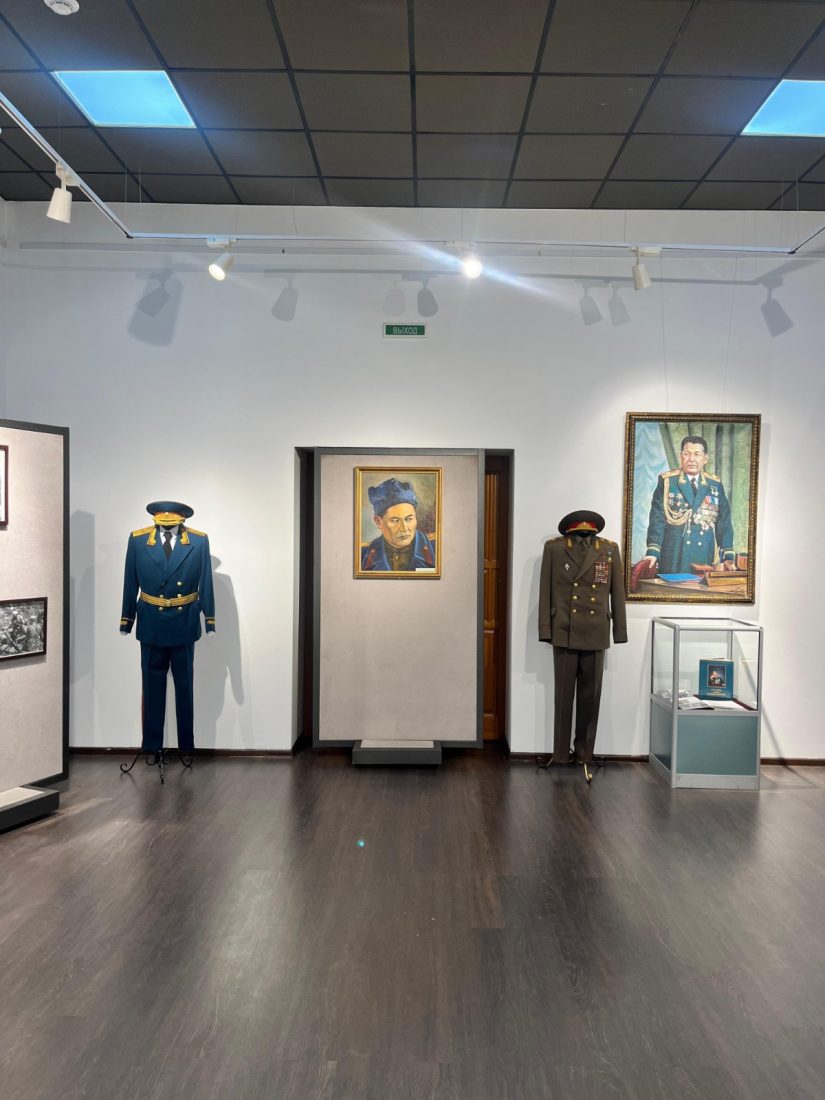 Также в экспозиции были выставлены военная форма и медали Героя Советского Союза, первого министра обороны независимого Казахстана, Халық Қаһарманы, генерала армии Сагадата Нурмагамбетова и участника Парада Победы 1945 года, министра внутренних дел Казахской ССР Андрея Платаева.