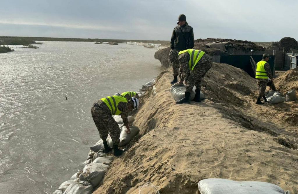 В селе Куйлыс и Жайсанбай Иргизского района Актюбинской области продолжаются работы по укреплению берега, как сообщает Optimism.kz. За сутки было уложено 300 мешкотар и 89 тонн инертных материалов. На месте работают силы ДЧС Актюбинской области и ВЧ 20982 МЧС РК. Фото: МЧС РК.