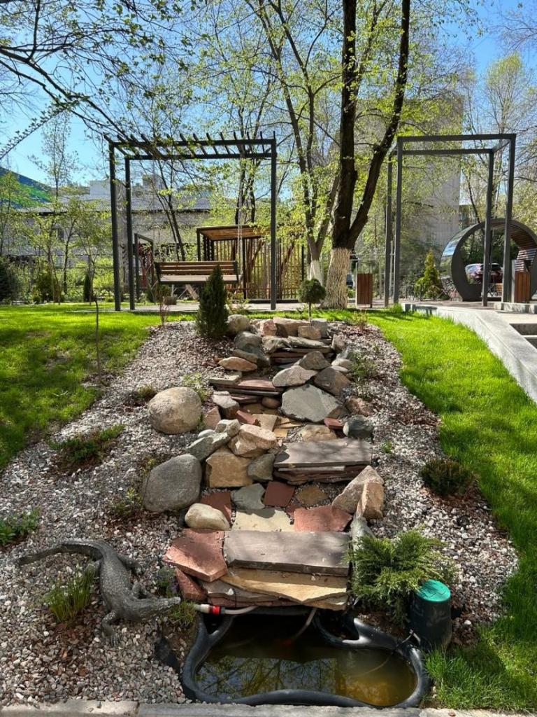 К примеру, Наталия Лазарева, проживающая в Алмалинском районе, стала победителем в номинации «Лучший двор». Алматинка отметила, что задумка о благоустройстве двора пришла ей и нескольким соседям еще в 2020 году: жители посеяли газон, выложили бордюры для миксбордера. Позже во дворе появилась альпийская горка с водопадом.