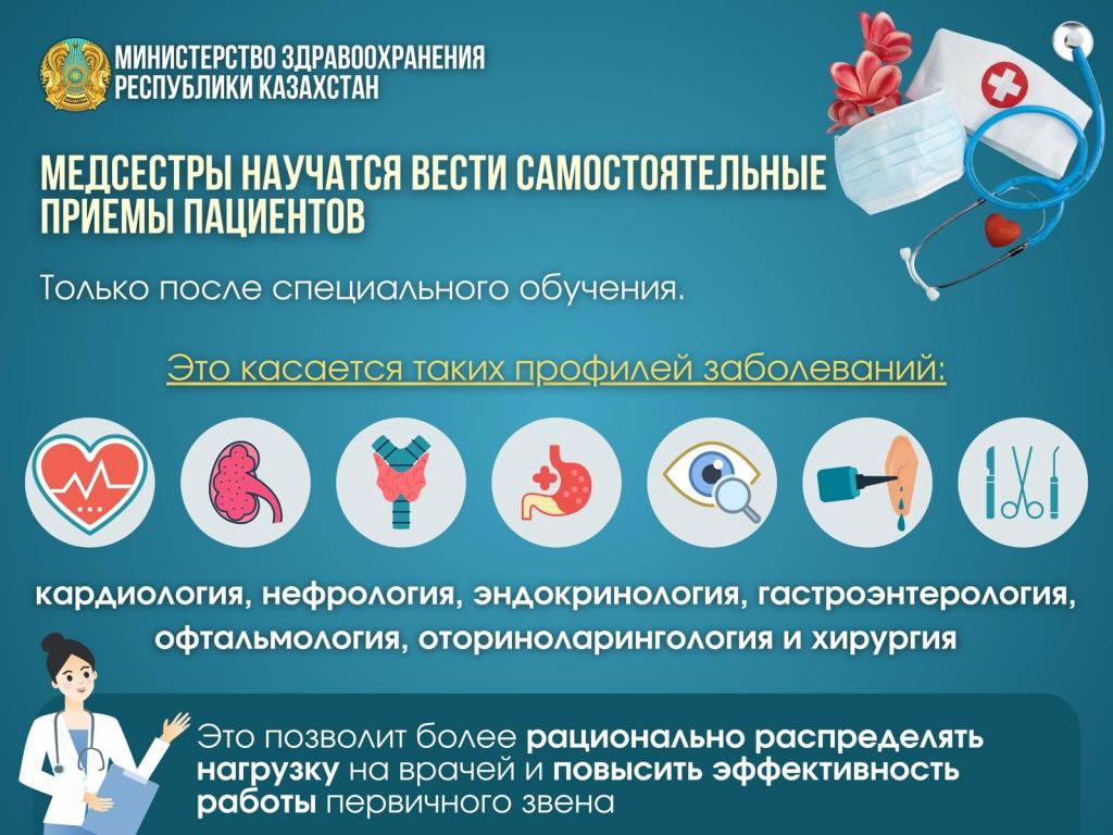 Начато обучение среднего медицинского персонала по программам, которые позволяют им вести пациентов с заболеваниями по ряду таких направлений, как кардиология, нефрология, эндокринология, гастроэнтерология, офтальмология, оториноларингология и хирургия.