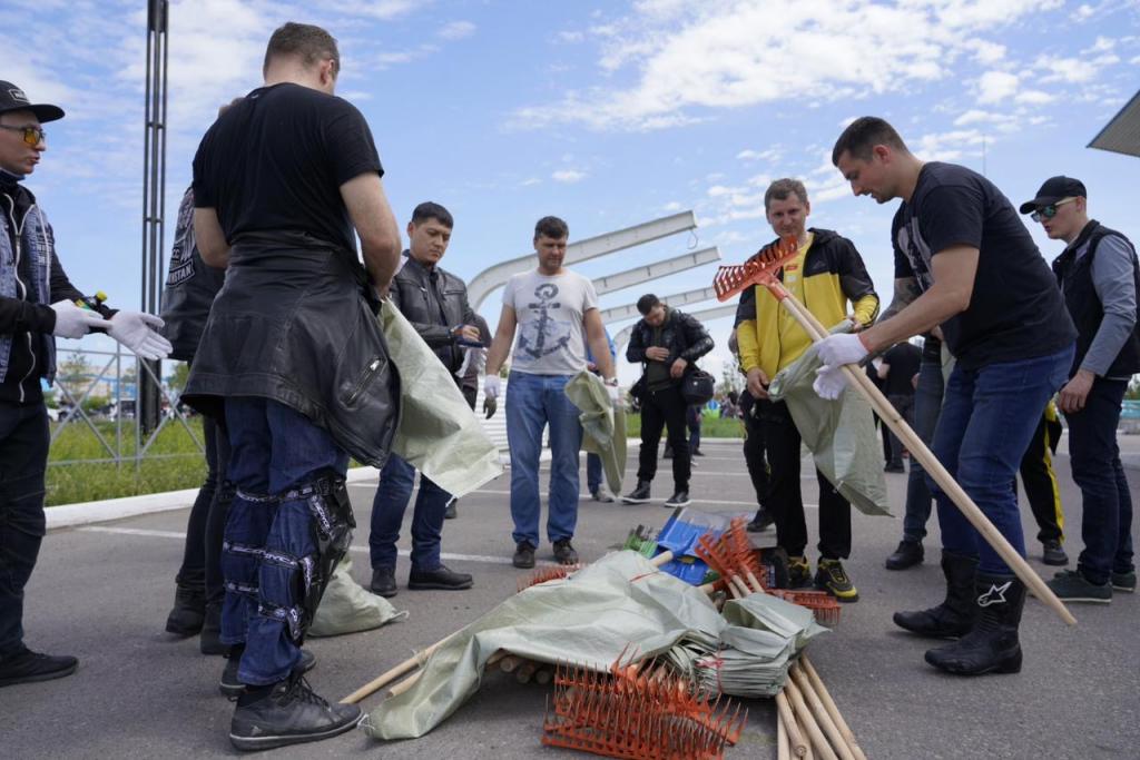 Байкеры вышли на экоакцию перед началом мотопробега.
