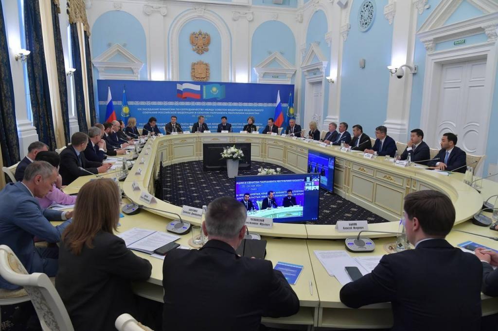 В ходе 21-го заседания Комиссии по сотрудничеству между Советом Федерации Федерального Собрания Российской Федерации и Сенатом Парламента Республики Казахстан были обсуждены важные аспекты сотрудничества между двумя странами. Участники встречи выразили готовность укреплять отношения в различных сферах, включая культурно-гуманитарную, туристическую и спортивную. Выступившие на мероприятии политики подчеркнули важность дружбы народов, уважения интересов друг друга и готовности к дальнейшему сотрудничеству. Россия и Казахстан готовы углублять межрегиональное сотрудничество и развивать двусторонние отношения во всех областях, что способствует процветанию и благополучию обеих стран.