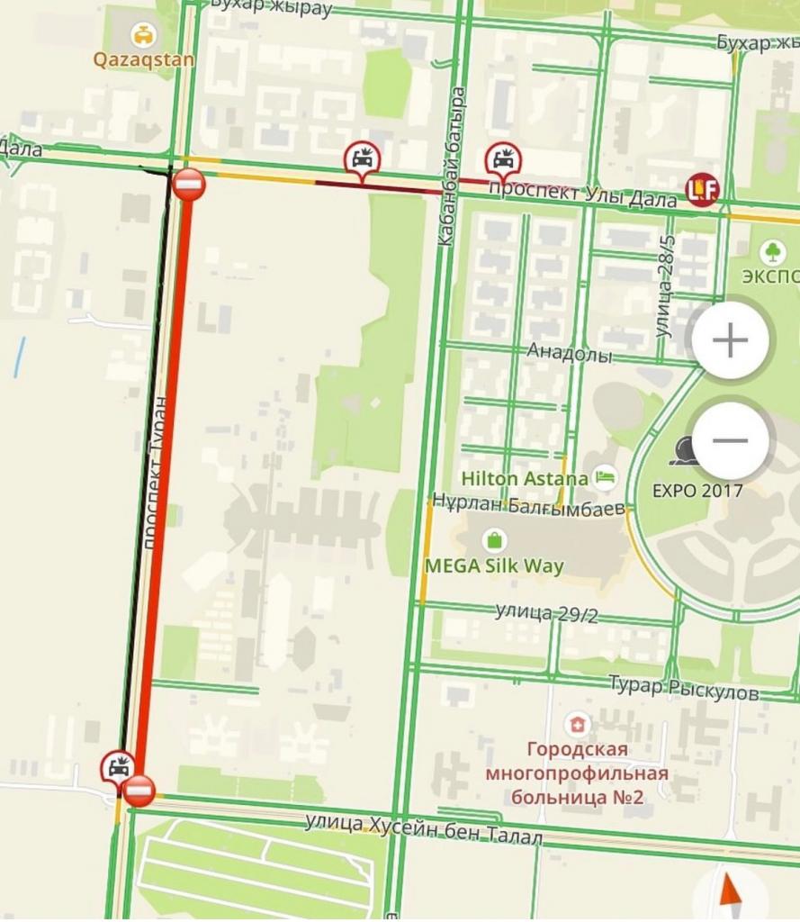 С 28 по 30 мая текущего года вышеуказанный участок будет полностью перекрыт для укладки верхнего слоя дорожного полотна. При этом пересечения Туран/Хусейн бен Талал и Туран/Улы Дала будут открыты.