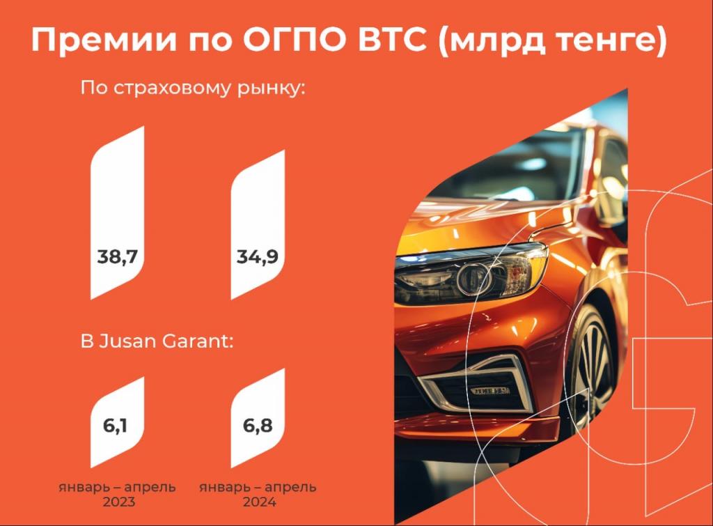 В Jusan Garant наблюдается небольшой рост сборов премий по обязательной автостраховке: 6,8 млрд тенге за четыремесяца 2024 года против 6,1 млрд тенге за аналогичный период прошлого года.