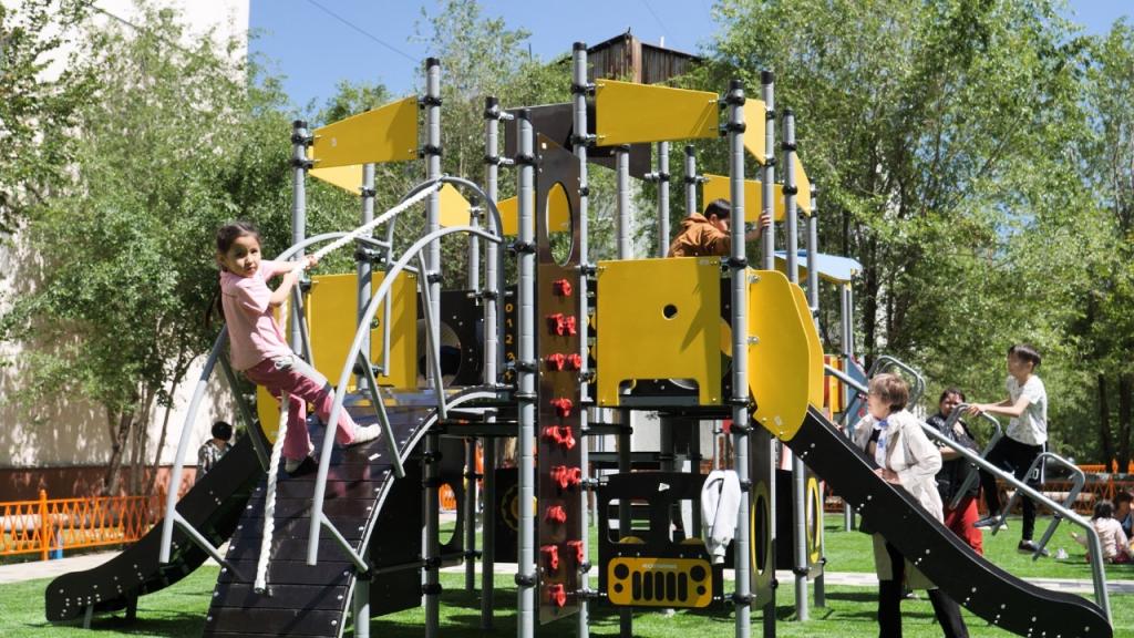 Особенностью данного проекта стала установка малых архитектурных форм с элементами национального стиля, таких как двойные качели, качели-балансир, карусели и др. Это стало уникальным шагом в развитии городской инфраструктуры и создало новые возможности для отдыха и развлечений жителей района Алматы.