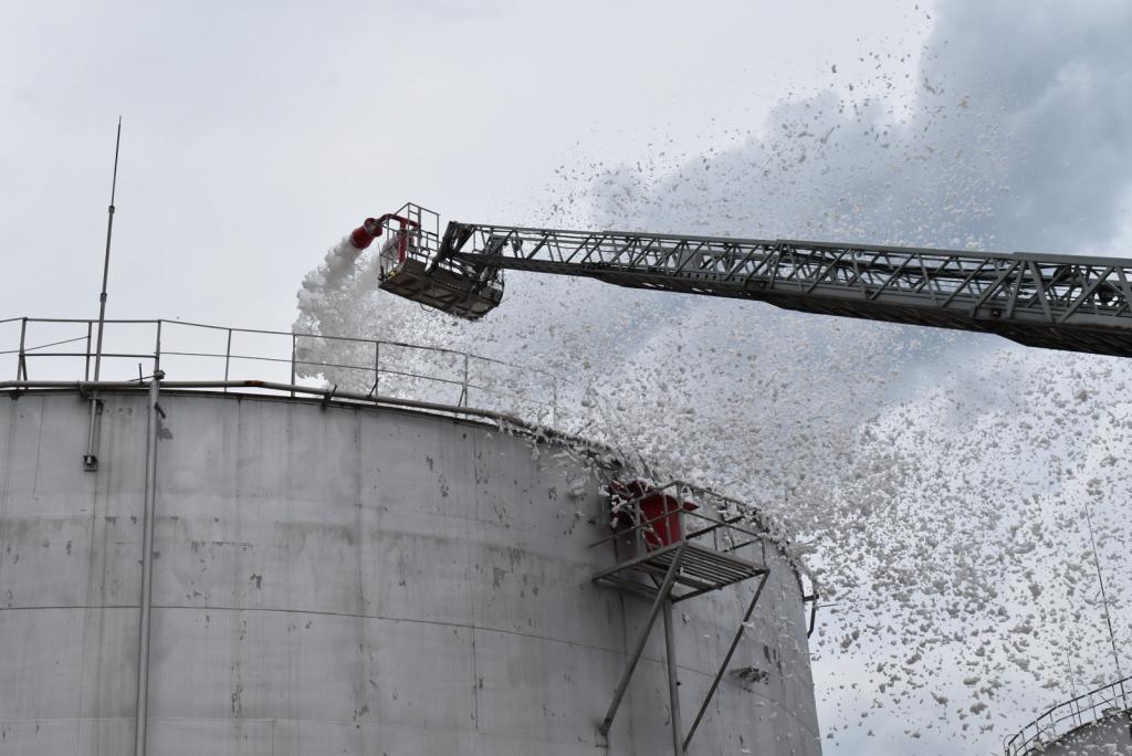 Согласно тактическому сценарию учения, в результате высокой температуры наружного воздуха на объекте произошел перегрев резервуара с дизельным топливом, что привело к возникновению взрыва паровоздушной смеси.