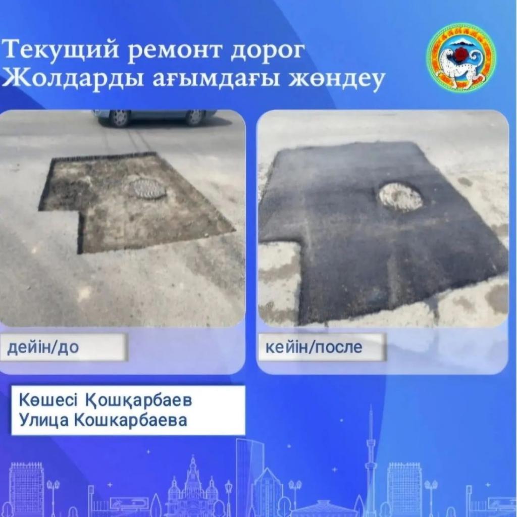 Следующие улицы, где планируется провести ремонт, включают ул. Ботакара, Кокарай, Жана Арка, Аршалы, Темирказык, Альмерек Абыз, Аруана, Шокан Абыз и другие.
