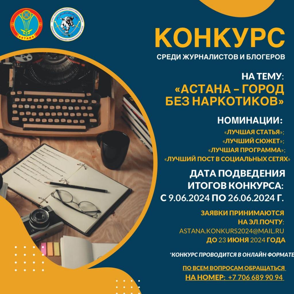 В честь Международного дня борьбы с наркоманией в столице запускают конкурс на тему «Астана — город без наркотиков» среди журналистов и блогеров, передает официальный сайт городского акимата.