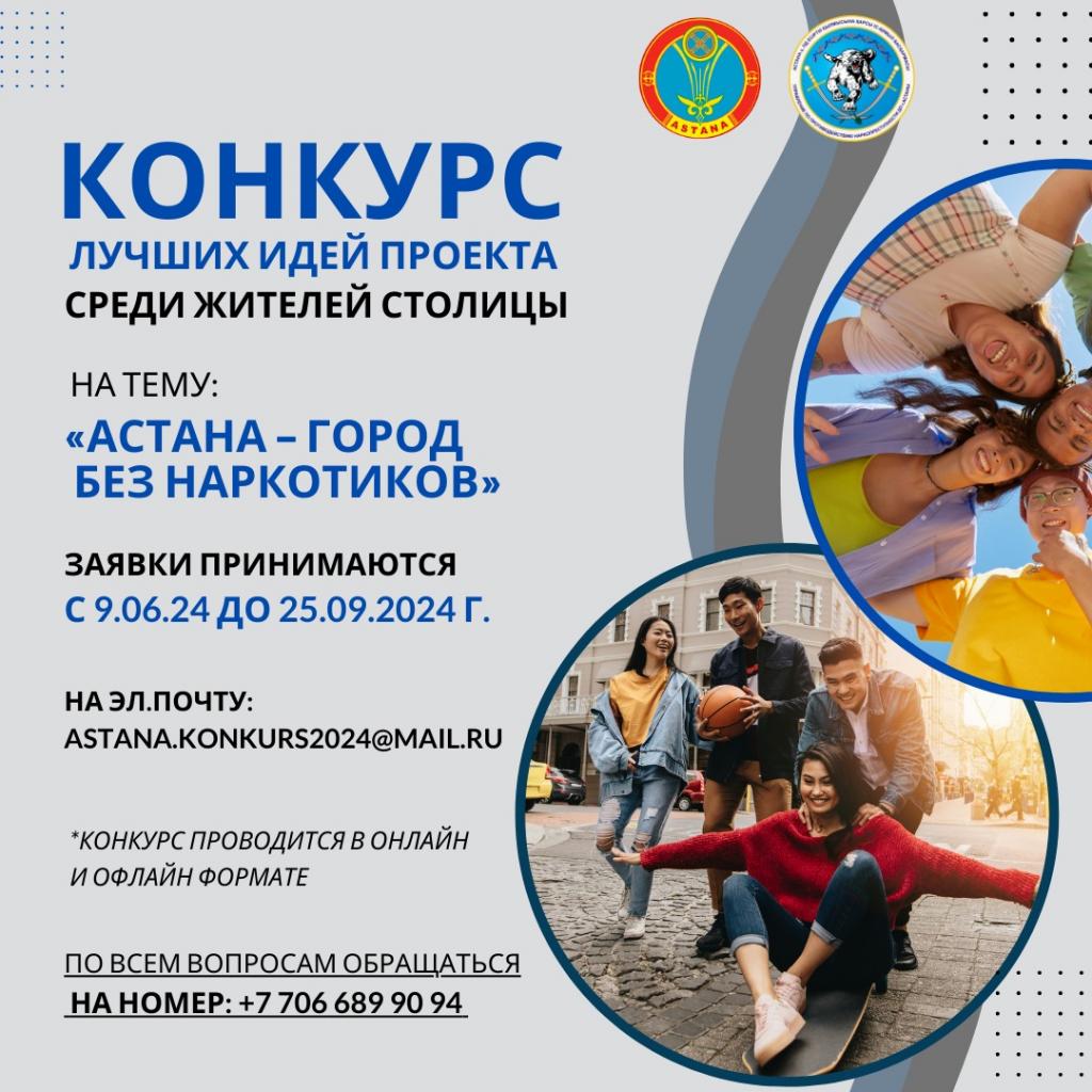 Конкурс проводится при поддержке Управления внутренней политики столицы и Управления по противодействию наркопреступности ДП Астаны.